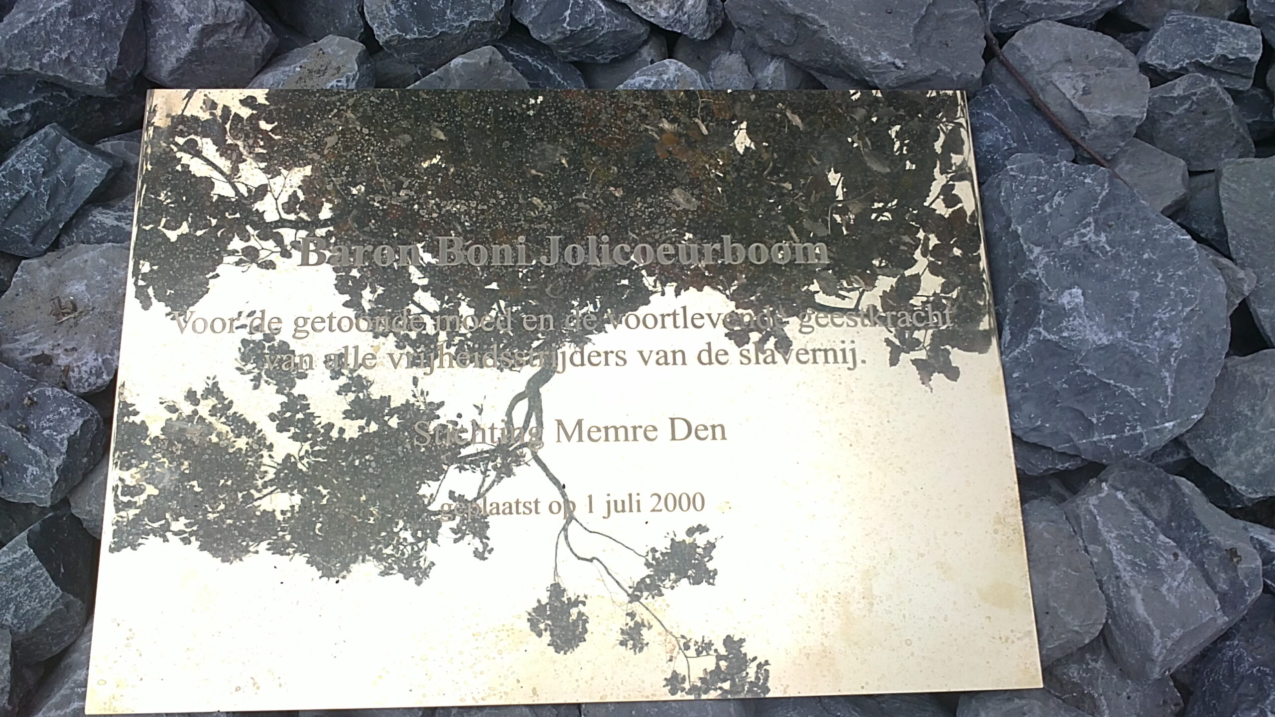 De Monumentale Voorouders Boom (voorheen ‘Baron Boni Jolicoeurboom’) wortelt in Amsterdam Zuidoost. Dit levend monument is ons eerste initiatief in 2000 en is opgedragen aan het verzet en de strijd tegen de trans-Atlantische slavernij. Met zijn plantdatum van 1 juli 2000 is de boom het 1e slavernijmonument in Nederland.