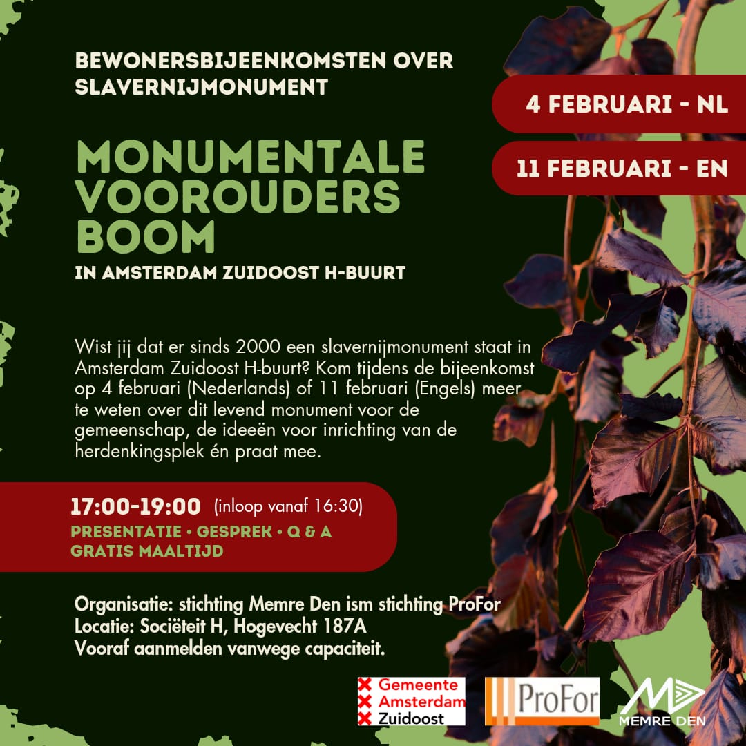 In najaar 2025 wordt het herdenkingsterrein rond de Monumentale Voorouders Boom in samenwerking met gemeente Amsterdam heringericht. Op het terrein komen looppaden en zitgelegenheid. Bij de boom komt ook een nieuw herdenkingsbord te staan en verder ook kunst gemaakt door kinderen.